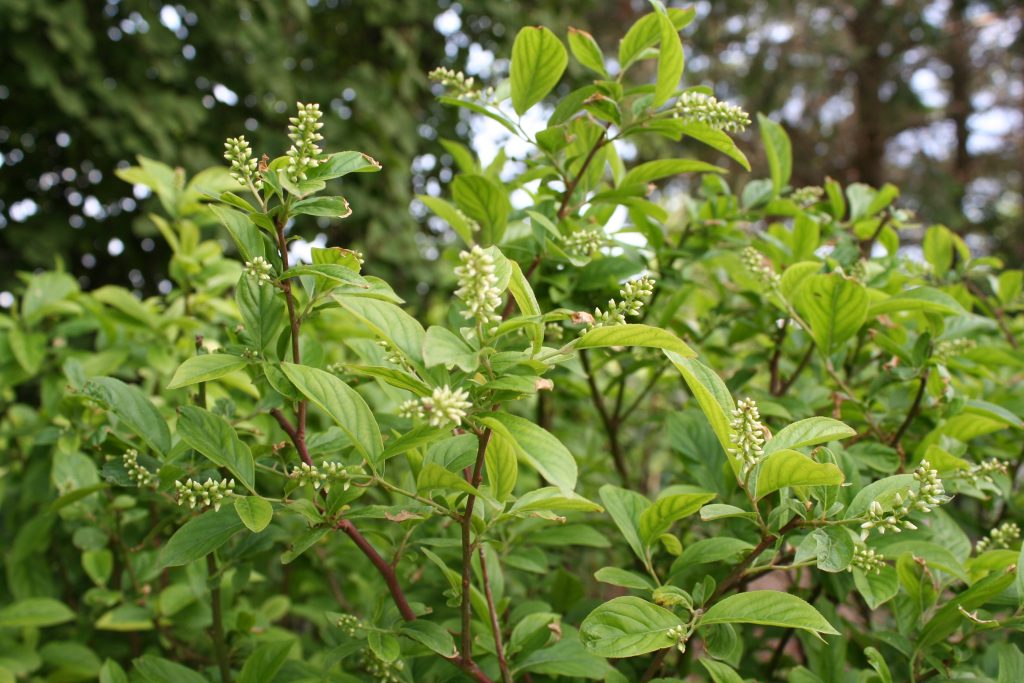 - Grows 8-12’ tall, white flowers in June/July, full sun to part shade